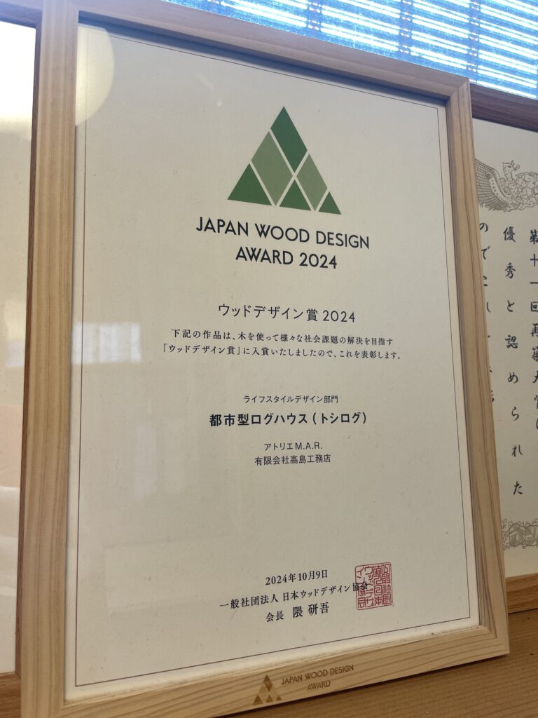 弊社は「都市型ログハウス(トシログ)」というタイトルで、ライフスタイル部門の量産型住宅のカテゴリーにおいて入選。